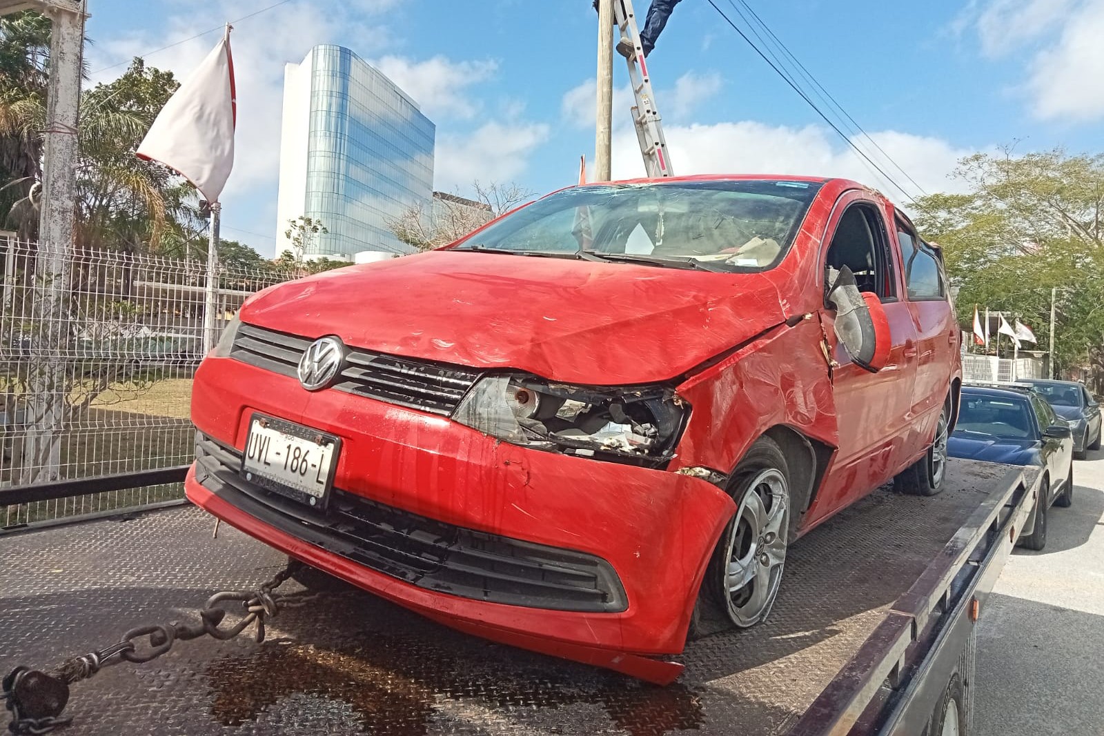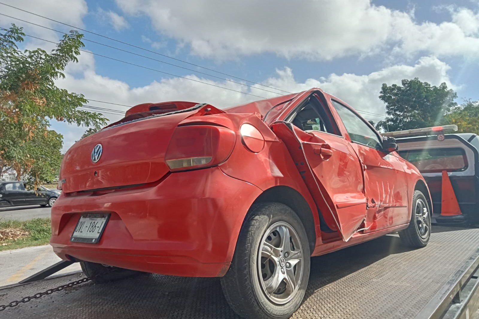 Por el choque la conductora del Gol perdió el control de su volante, giró como trompo y se fue a la handonada central quedando con las llantas hacia arriba. La mujer fue atendida por paramédicos de la secretaría de seguridad pública pero solo tuvo golpes en la cabeza y en varias partes del cuerpo nada que pusiera en riesgo su vida. La mujer decidió quedarse para llegar a un arreglo al pago de daños por medio del seguro del volquete y pedir un pase médico para un hospital particular.