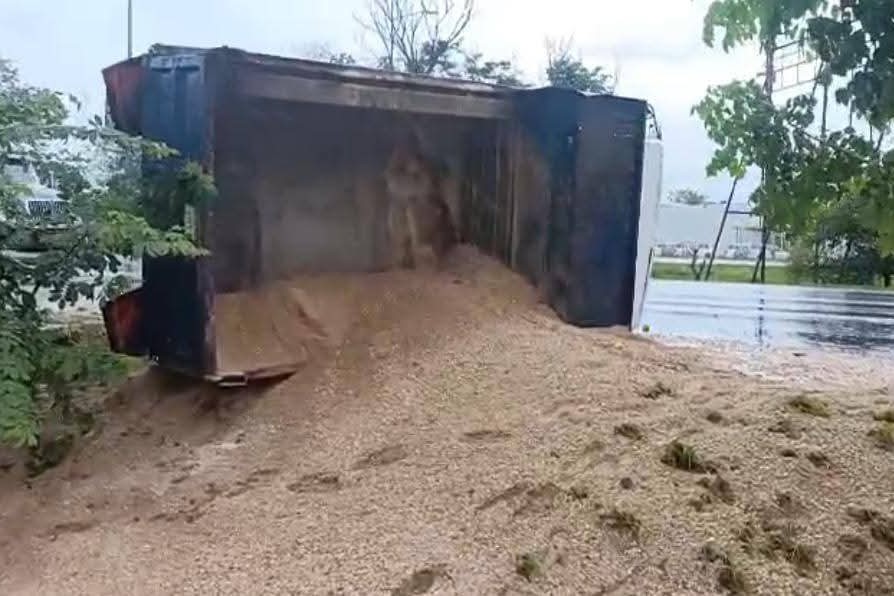 Volquete Vuelca en el Periférico Sur de Mérida Dejando su Carga Esparcida en la Vialidad