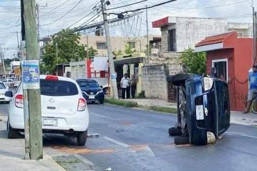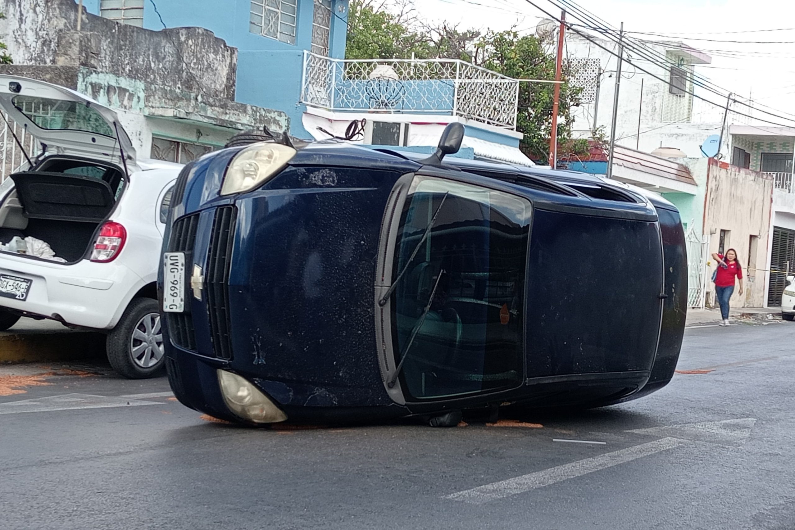 Vuelca al Impactarse Contra un Auto Estacionado en el Sur de Mérida