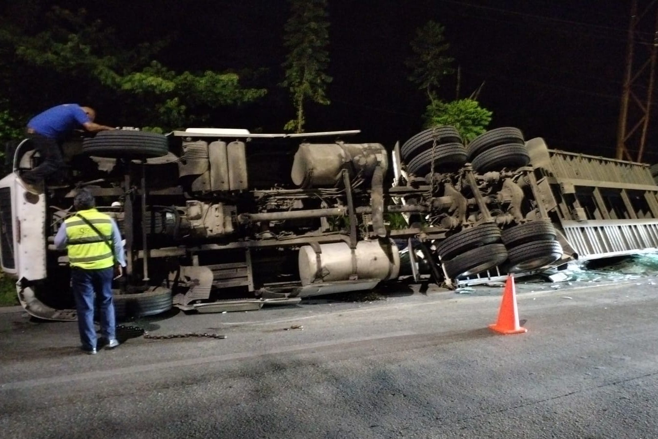 El operador solo tuvo algunos golpes leves, así que pidió ayuda a la empresa transportista, llegando al sitio agentes policiacos que abanderaron la zona y solicitaron el apoyo de grúas. Las pérdidas materiales fueron de consideración.