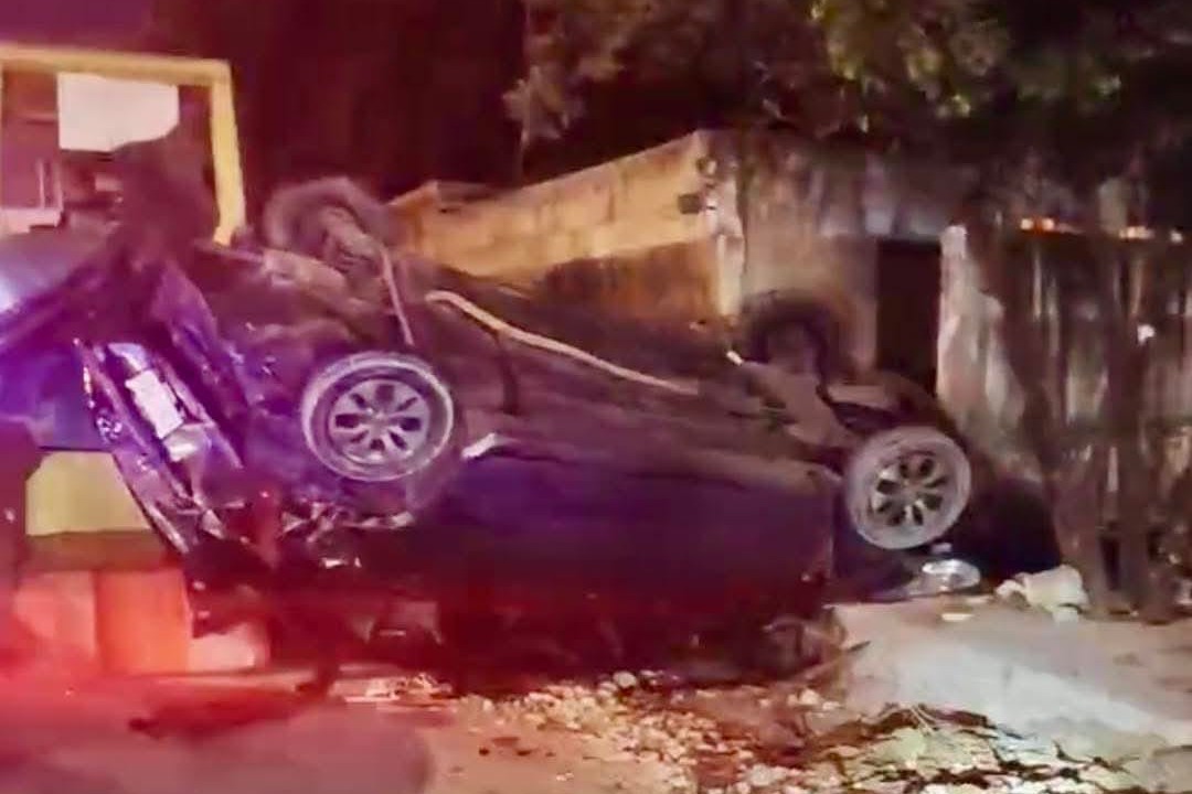 KANASÍN, YUC., 2 de enero.- Conductora que manejaba a exceso de velocidad volvió a nacer tras volcarse y estrellarse contra una maquinaria pesada y un predio en San Antonio Kaua 3 del municipio de Kanasín.