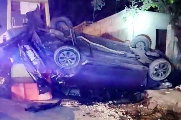 KANASÍN, YUC., 2 de enero.- Conductora que manejaba a exceso de velocidad volvió a nacer tras volcarse y estrellarse contra una maquinaria pesada y un predio en San Antonio Kaua 3 del municipio de Kanasín.