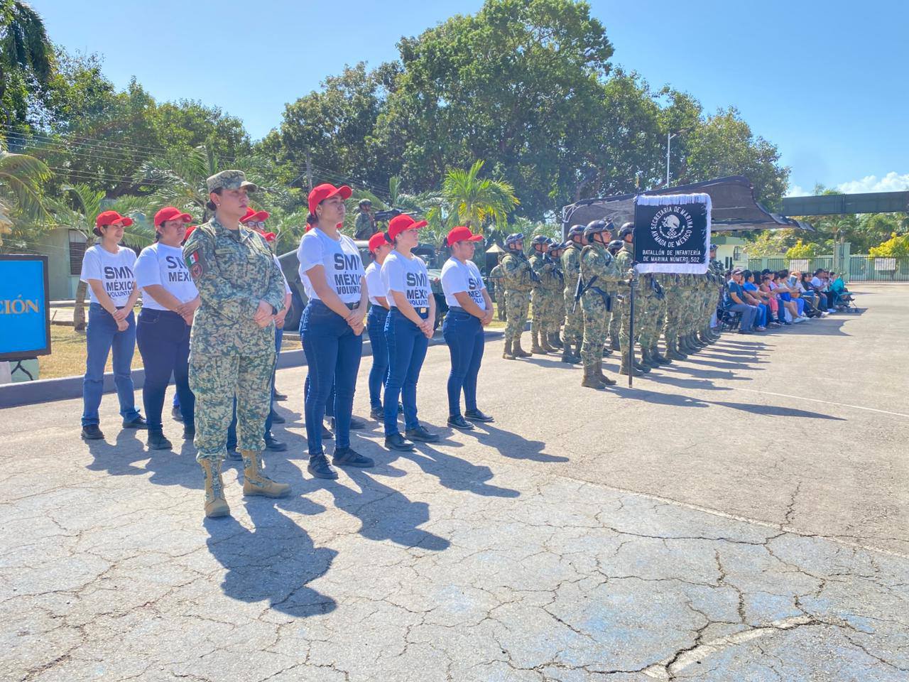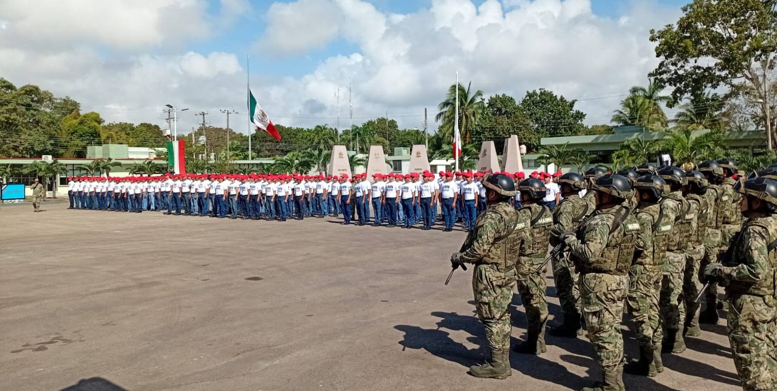 Durante la ceremonia se dio la bienvenida a más de 200 elementos del SMN del sur de Quintana Roo, 165 soldados y 53 marineros, quienes iniciarán su preparación bajo los valores de honor, disciplina y patriotismo bajo la instrucción de la Sedena y la Semar.