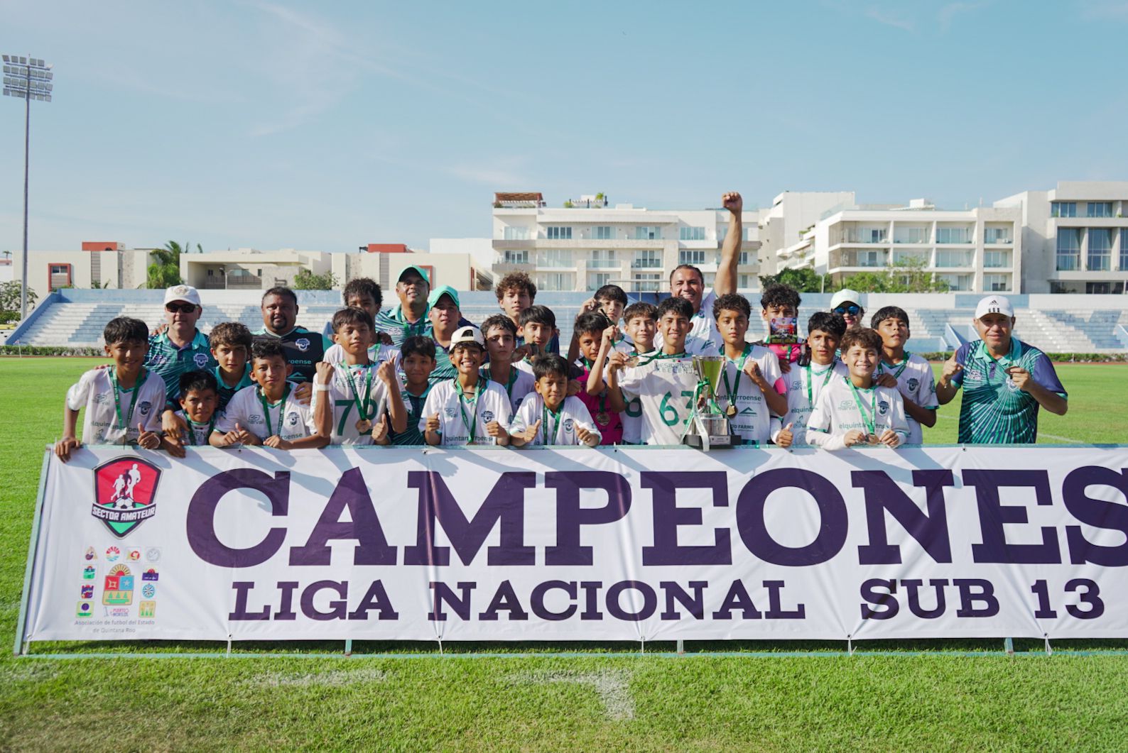 PLAYA DEL CARMEN, Q. ROO a 25 de mayo.- Tras la dolorosa derrota la semana pasada en la Gran Final de la categoría Sub-15, el Atlético Quintanarroense no estaba dispuesto a dejar otro trofeo en el camino, y este sábado se convirtieron en los Campeones de la categoría Sub-13 en la Zona Uno de la Liga Nacional Juvenil, por lo que se ganaron su lugar a la fase Nacional, misma que se llevará a cabo a partir del próximo 15 de junio en las instalaciones de la Federación Mexicana de Futbol (FMF) en Metepec, Estado de México.