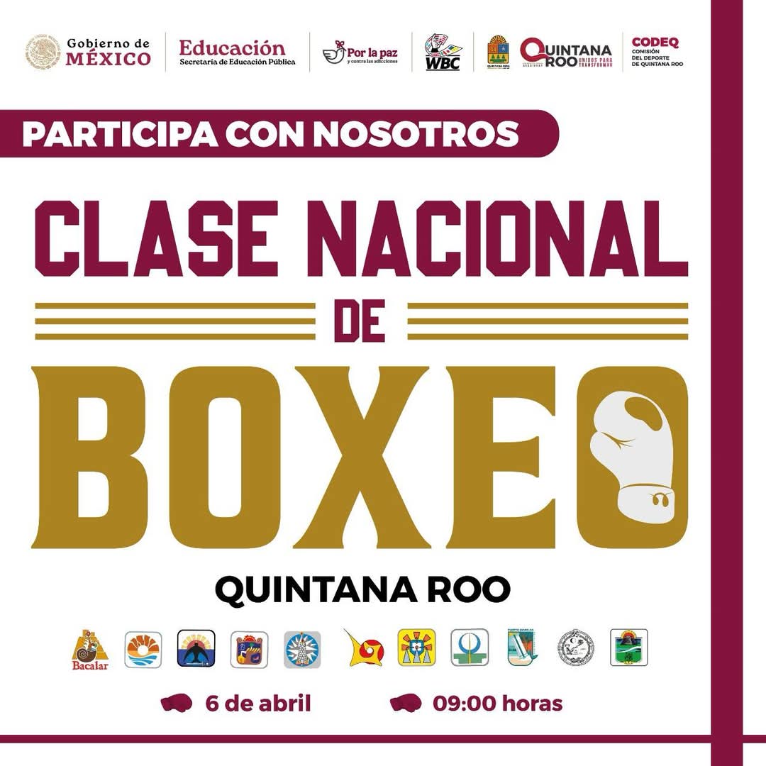 CANCÚN, Q. ROO a 2 de abril.- Todo se encuentra listo en los 32 estados de la República Mexicana, incluyendo desde luego a Quintana Roo, para que este próximo domingo 6 de abril a partir de las 9:00 horas (10:00 horas en Quintana Roo), se lleve a cabo la primera Clase Nacional de Box, evento que es uno de los 35 puntos planteados por la presidenta de México, Claudia Sheinbaum Pardo, en el que estableció terminar con la vida sedentaria y apoyar al deporte comunitario.