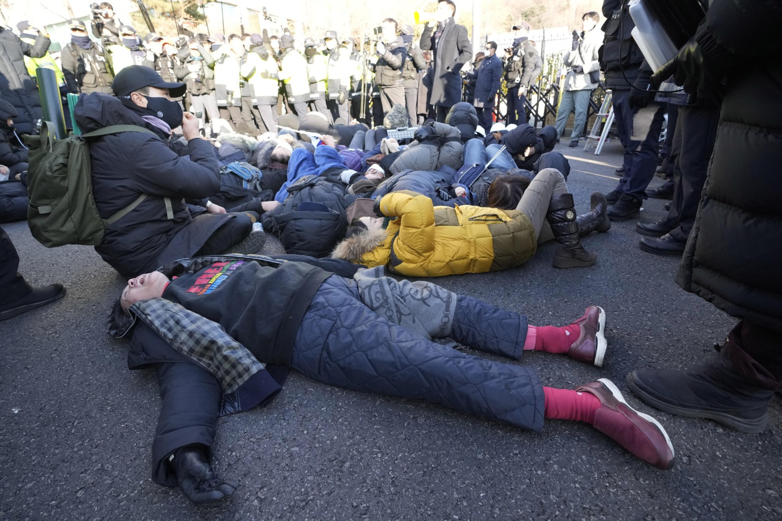 Los manifestantes gritaban “¡protejan al presidente, protejan, protejan, protejan!”, mientras la Policía intentaba dispersar a los que yacían en el suelo y controlar a la multitud, que incluía una protesta contra Yoon.