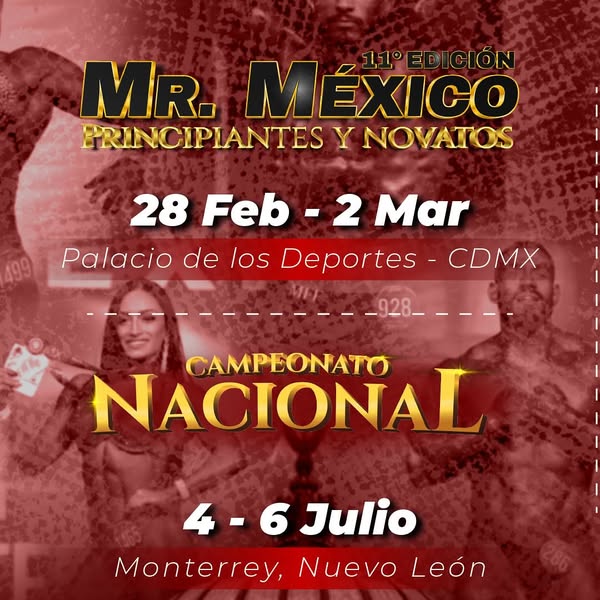 Cabe mencionar que el Campeonato Mr. México Principiantes y Novatos 2025 de Fisicoconstructivismo, se realizará en dos sedes, las cuales serán en la Ciudad de México, del 28 de febrero al 2 de marzo y en Nuevo León, del 4 al 6 de julio, siendo avalados por la Federación Mexicana de la disciplina.
