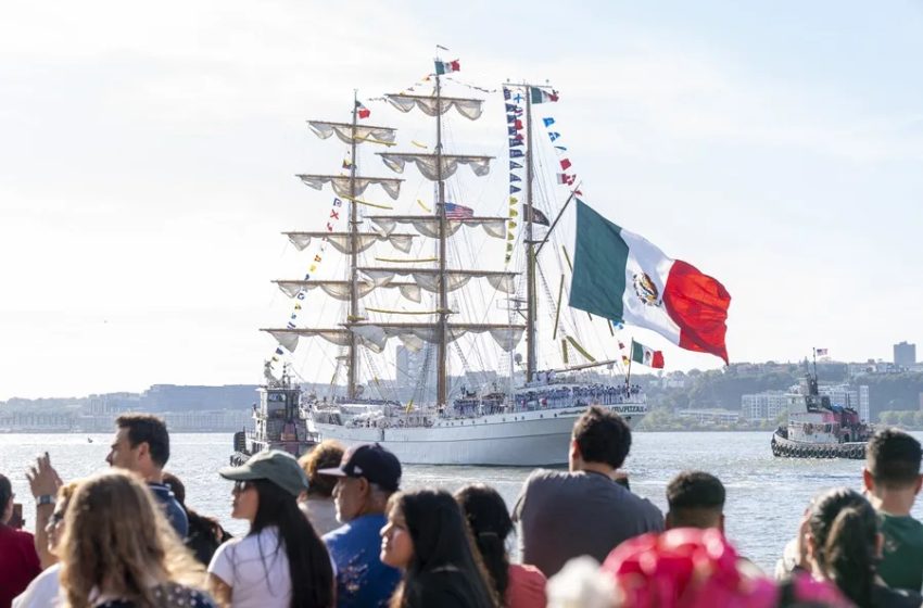 El buque escuela, conocido como el “Caballero de los mares”, partió de regreso a México tras permanecer 20 semanas en Nueva York