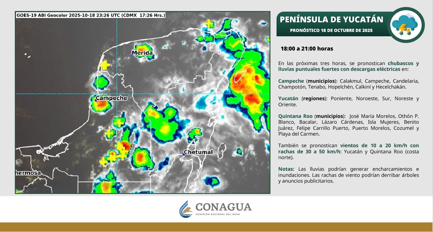 • Autoridades de la Comisión Nacional del Agua (Conagua) y la Coordinación Estatal de Protección Civil de Quintana Roo instan a mantenerse informados y seguir las recomendaciones oficiales durante la actual temporada de huracanes.