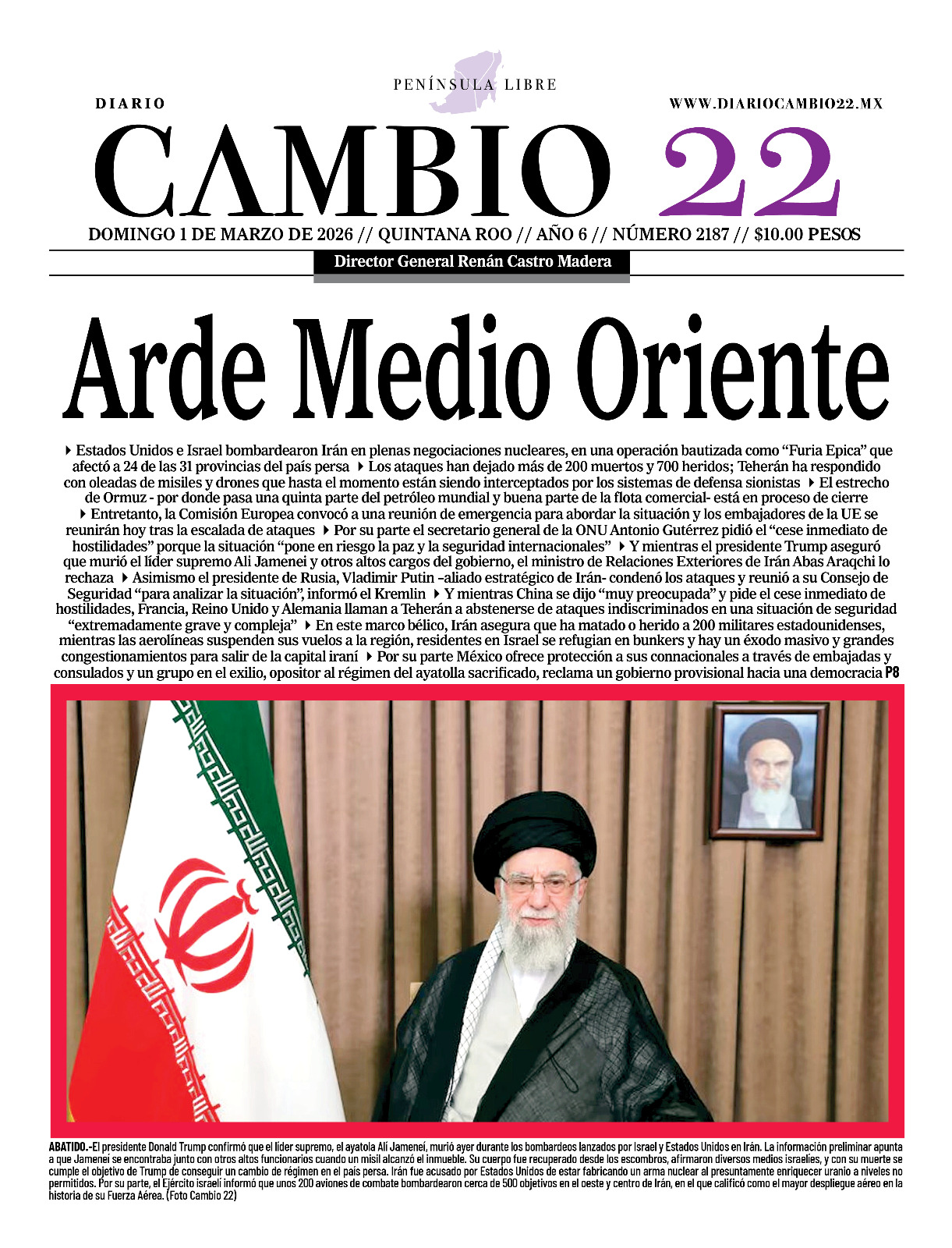 1 Mar. 2026 En comunicado oficial afirma que no apoyará “ninguna regresión que atente contra la democracia en el país”. “Decimos no al regreso del viejo…Trump Asegura Que EE.UU. Hundió 9 Buques De Guerra Iraníes Y Promete “Ir Por El Resto” En Escalada Contra Teherán